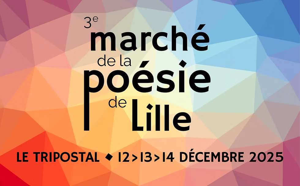 Le 3e Marché de la Poésie de Lille - co-organisé par le Centre littéraire Escales des lettres et l'association c/i/r/c/é (Marché de la Poésie de Paris) - vous donne rendez-vous les 12, 13 et 14 décembre 2025 au Tripostal, précédé des Escales du Marché, une série de rencontres poétiques qui ouvrira les festivités dans de nombreuses villes de la Métropole Européenne de Lille du 26 novembre au 11 décembre.