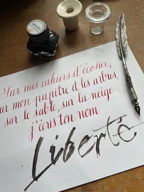 Prenez votre après midi pour créer votre texte calligraphié à la plume pointue, accompagné par Sylvie Edeline.