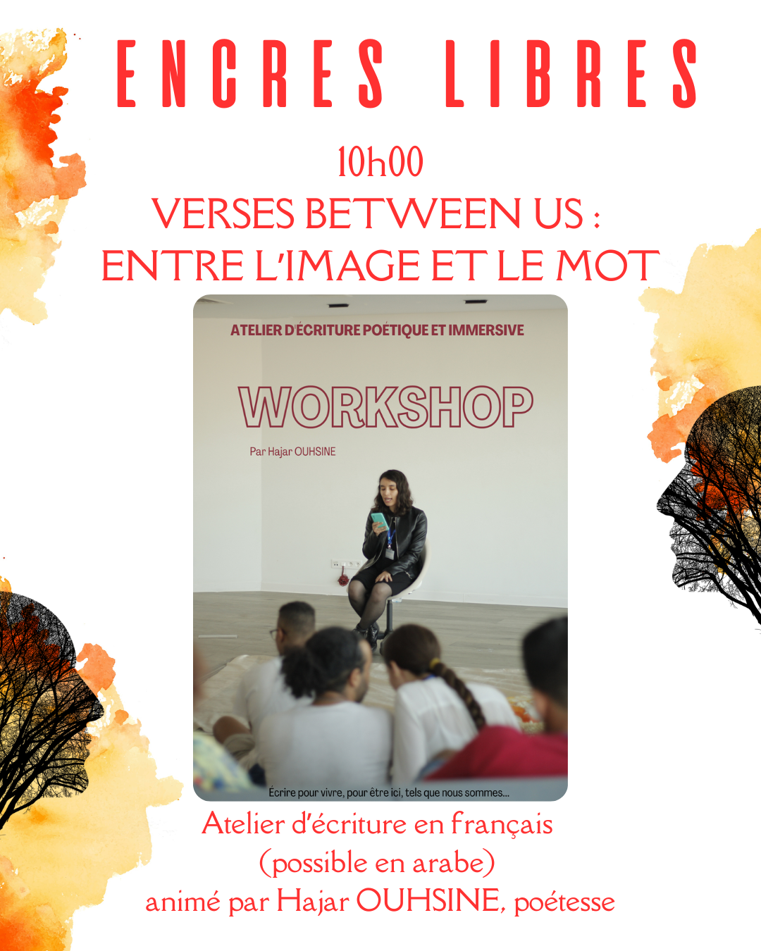 10h00 à 12h00 : Verses between us : entre l’image et le mot // Atelier d’écriture en français (possible en arabe), animé par Hajar OUHSINE, poétesse