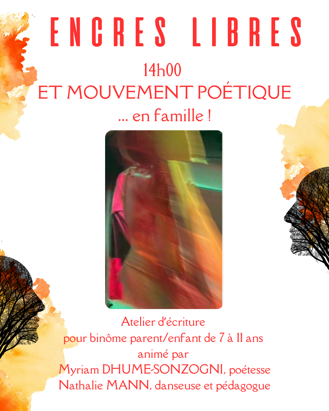 14h00 à 16h00 : …et mouvement poétique, en famille ! // Atelier d’écriture, animé par Myriam DHUME-SONZOGNI, poétesse et Nathalie MANN, danseuse
