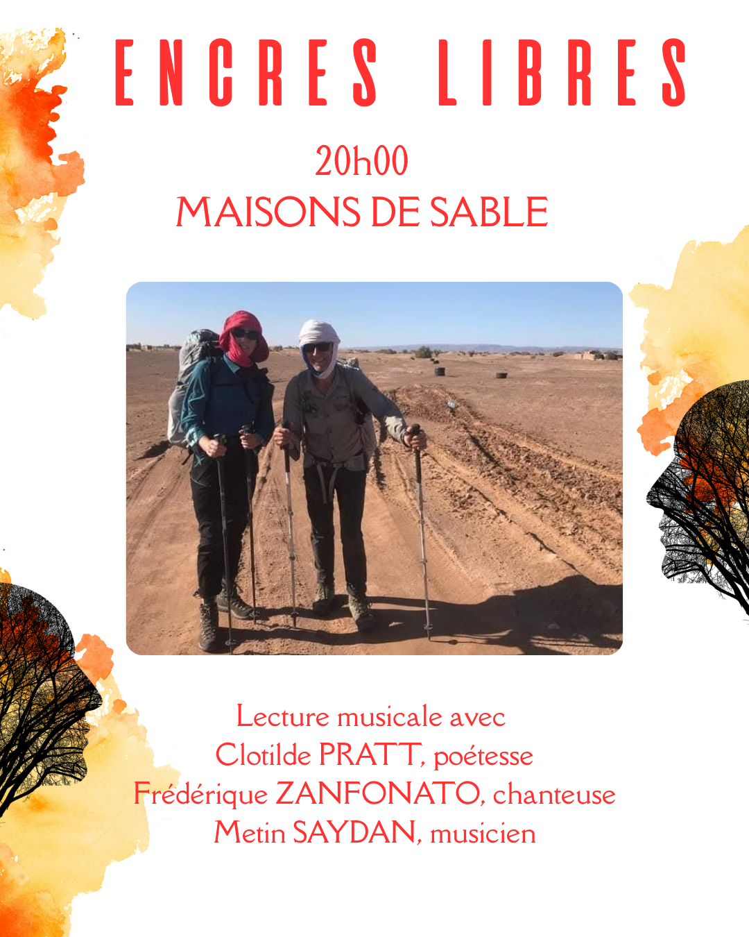 20h00 à 21h00 : MAISONS DE SABLE // Lecture musicale, avec Clotilde PRATT, poétesse, Frédérique ZANFONATO, chanteuse, Metin SAYDAN, musicien