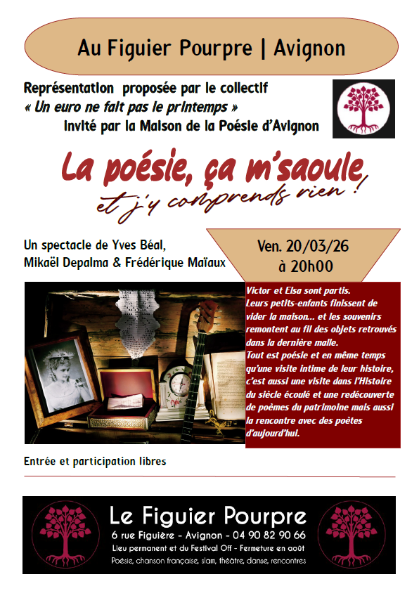 Tout est poésie et en même temps qu’une visite intime de leur histoire, c’est aussi une visite dans l’Histoire du siècle écoulé et une redécouverte de poèmes du patrimoine mais aussi la rencontre avec des poètes d’aujourd’hui.
