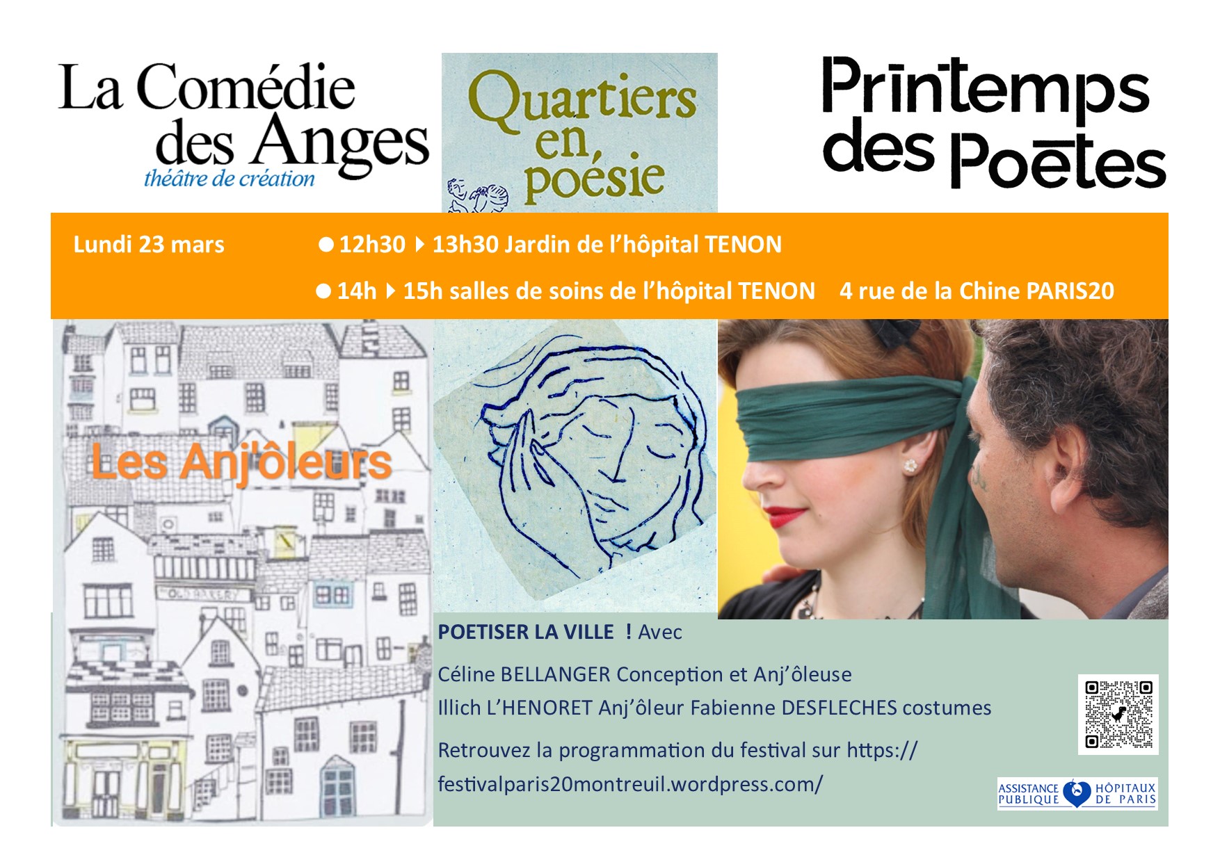 Le 23 mars Les Anj’ôleurs, poésie d’amour pour frisson d’oreille PERFORMANCE LABEL PRINTEMPS DES POETES 12h30 à 13h30 jardin de l’hôpital Tenon 4 rue de la Chine PARIS20