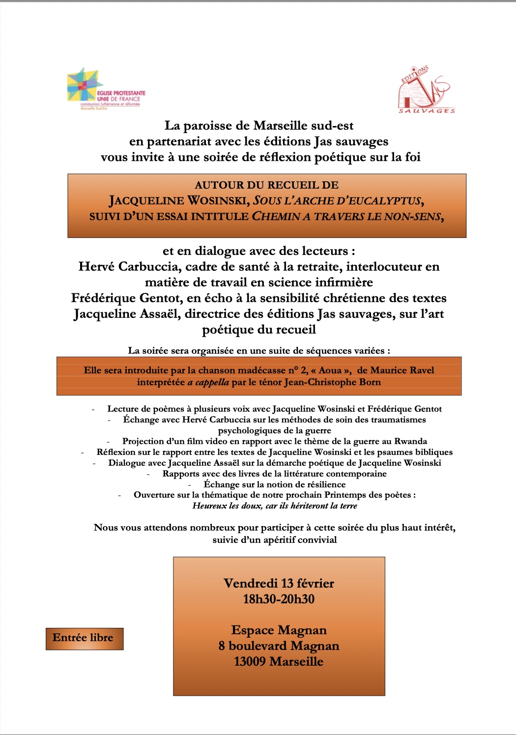- Réflexion sur le rapport entre les textes de Jacqueline Wosinski et les psaumes bibliques Dialogue avec Jacqueline Assaël sur la démarche poétique de Jacqueline Wosinski