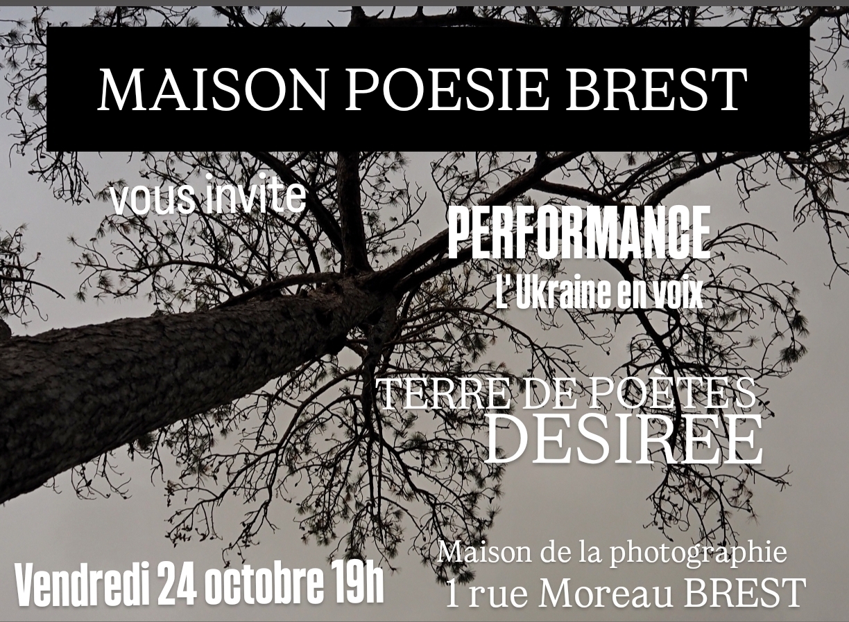 Le 24 octobre, à 19 heures, la Maison Poésie Brest fera résonner la poésie Ukrainienne dans le cadre de l'exposition de Guillaume Herbaut, à la M...